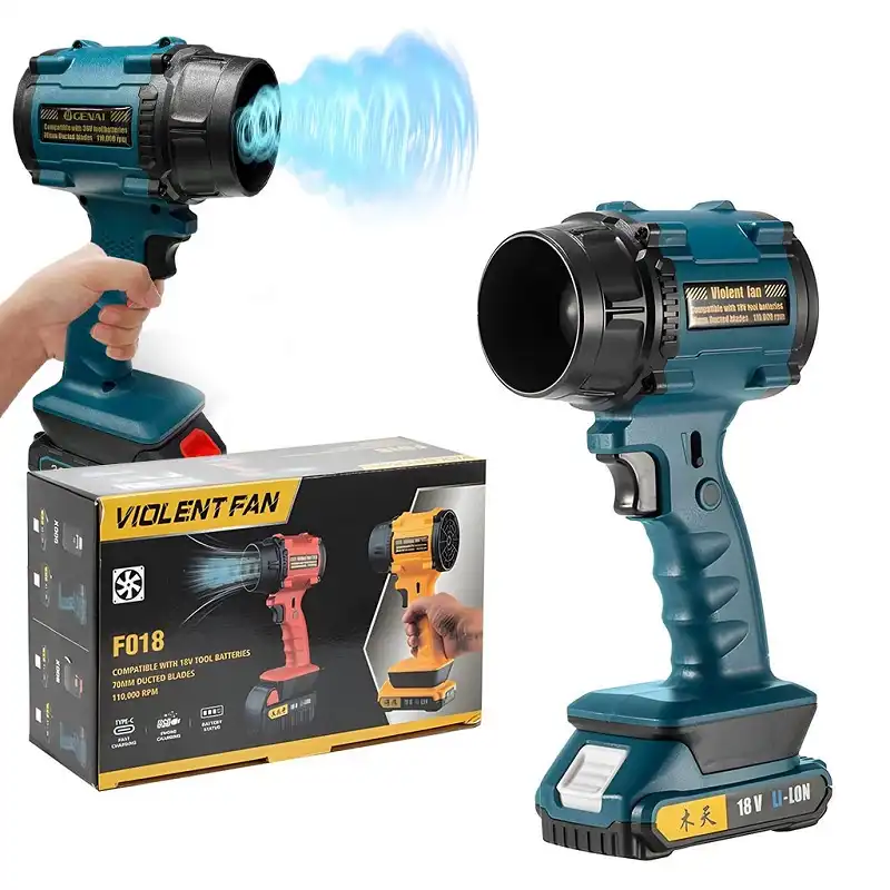 قویترین جت فن سری F018 از برند با کیفیت ویولنت که دارای یک باتری 18ولت و موتور براشلس میباشد. این محصول فقط بصورت دمنده بوده و قدرت فوق العاده بالایی دارد. باتری این محصول از طریق برق شهری تایپ سی شارژ میشه و همچنین بعنوان پاوربانک نیز میشه استفاده کرد