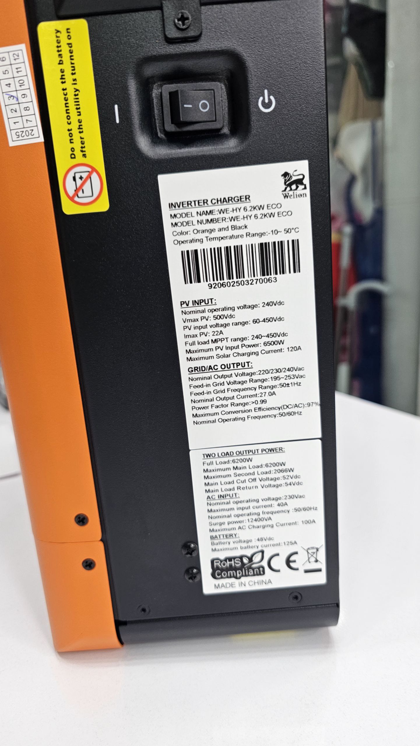 با سانورتر 6.2KV ویلیون مدل WE-HY-6.2KW ECO، برق خورشیدی خود را به حداکثر بهرهوری رسانید! با قدرت 6.2 کیلووات و ولتاژ ۴۸ ولت، این دستگاه ایدهآل برای خانهها و کسبوکارهاست. طراحی پیشرفته و کارآمد، مصرف انرژی شما را کاهش میدهد و در هزینههای برق صرفهجویی میکند. اکنون زمان آن است که به آیندهای سبزتر بپیوندید! سانورتر های ویلیون با خروجی 6200 وات و ورودی 48 ولت باتری یک انتخاب تضمینی برای سیستم های اضطراری و خورشیدی میباشد.